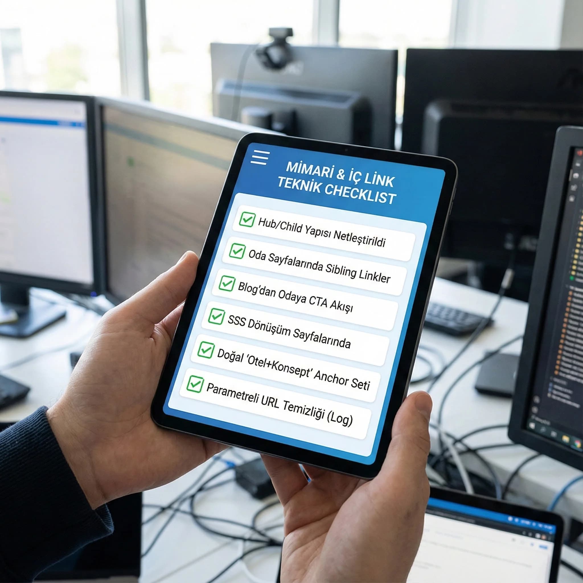 Bu asset, otel siteniz için hub/child/sibling iç link planını ve sayfa türü eşlemesini hazır bir blueprint olarak verir. Amaç; OTA rekabetinde otelin “entity” otoritesini güçlendirmek, crawl bütçesini verimli kullanmak ve kullanıcıyı net biçimde rezervasyon motoruna taşımaktır.