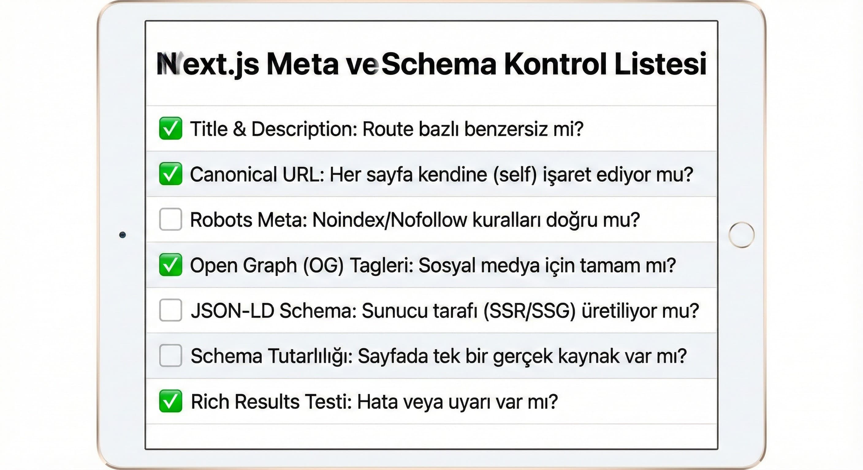 Next.js SEO’da başarılıdır; fakat bazı hatalar “sessiz” yaşanır: site görünür, kullanıcı okur, ama Google’ın gördüğü sayfa zayıf olur.