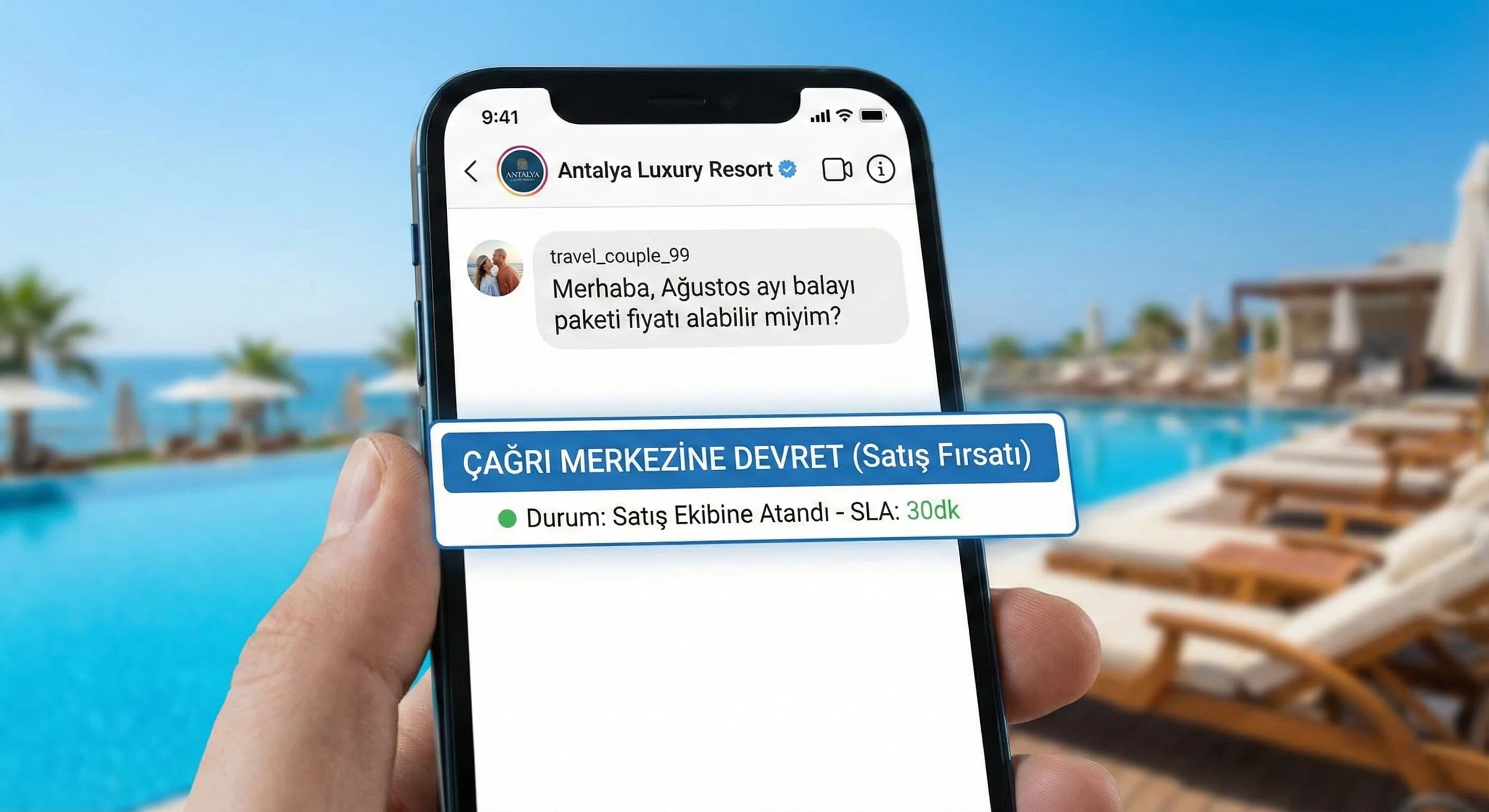 Sosyal DM ve yorumlar genelde “pazarlama” tarafında kalır; oysa çoğu mesaj rezervasyon niyetlidir. Multi-channel yapıda DM’ler çağrı merkezi akışına devredilir; pazarlama ise içerik/itibar yönetimine odaklanır. Böylece satış fırsatı kaçmadan, marka dili de korunur.