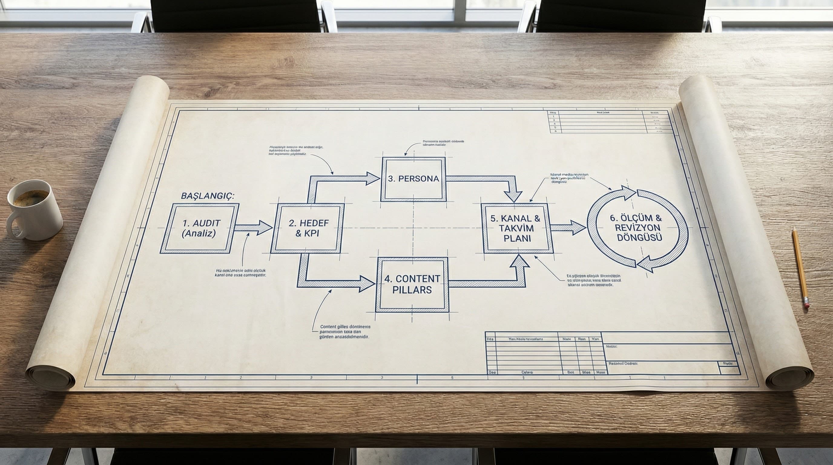 - Hedef/KPI ve persona kartlarını netleştirin, content pillars matrisi kurun.